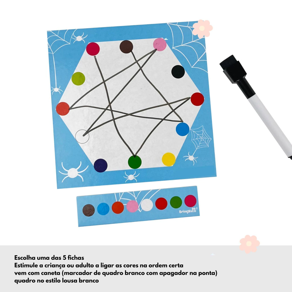 Escolha uma das fichas e estimule a criança ou adulto, com o marcador faça a conexão na ordem certas das cores ligando os pontos.