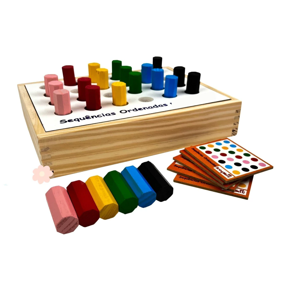 - Sequência Ordenadas: Reproduzir os processos combinatórios no tabuleiro com os pinos coloridos, conforme a ficha escolhida,
